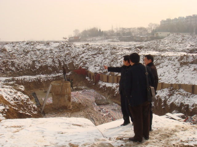 2010年1月10日公司盛智杰總工及公司有關(guān)部門負責(zé)人一行到泉河大橋檢查指導(dǎo)工作,經(jīng)過工地現(xiàn)場實地查看,以及項目部施工資料的檢查,7號、8號樁基承臺施工質(zhì)量符合設(shè)計要求,并且已通過工程監(jiān)理檢查及第三方檢測,可以進行上部回填,其他樁基自檢質(zhì)量符合設(shè)計要求,已通過工程監(jiān)理簽證,待近日第三方檢測通過后進入下道工序。箱梁預(yù)制在冬季采用蒸汽養(yǎng)護,已制成的5根自檢質(zhì)量符合設(shè)計要求。